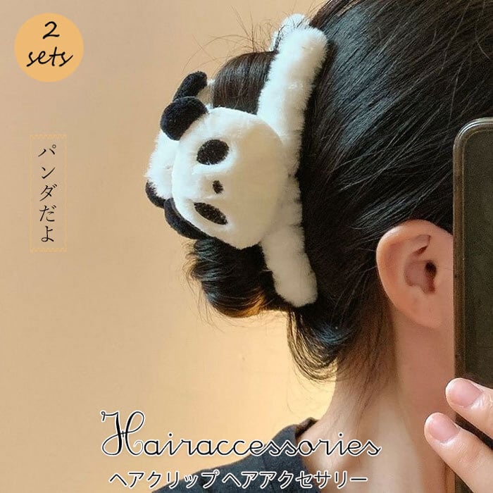 パンダ ヘアクリップ [2個入り] ふわふわ ヘアアクセサリー もこもこ ファー かわいい おしゃれ 大人 簡単 まとめ髪 韓国 韓国っぽ プチプラ ギフト プレゼント人気 ファッション雑貨 小物 女性用 誕生日 入学式 パーティ 20代 30代 40代 50代 | RivonClothing
