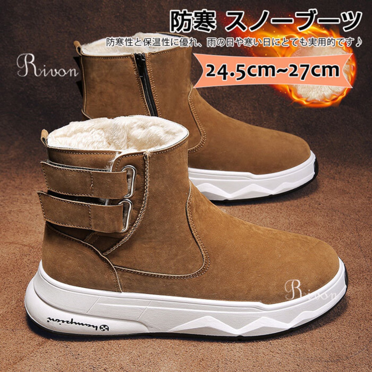 冬用 スノーブーツ メンズ 裏起毛 防寒 雪 スノーシューズ 幅広 バイクブーツ 厚底 ワークブーツ 人気 トレッキングシューズ 登山 靴 ボア 裏起毛 ハイカット アウトドア 防滑 軽量 スノーブーツ 裏起毛 防滑 防寒 暖かい 24.5~27cm | RivonClothing